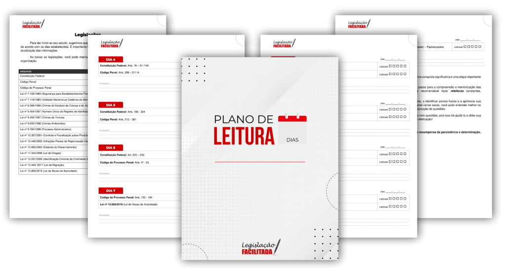 O importante é manter uma rotina regular de estudos, dedicando o tempo necessário para ler e compreender as legislações exigidas pelo edital do seu concurso. O Plano de Leitura facilita essa tarefa, organizando as leituras de forma estruturada e indicando quais códigos, leis e artigos devem ser estudados em cada dia.