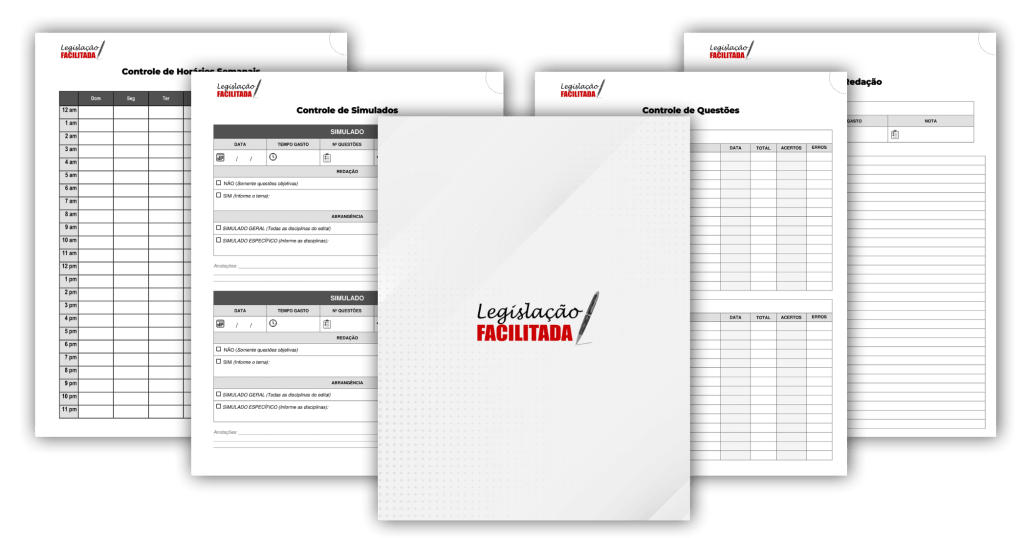 • Controle de horários semanais: Uma das principais dificuldades que os candidatos enfrentam durante a preparação é gerenciar o tempo de estudo. Um controle de horários semanais é uma ferramenta que permite estabelecer uma rotina de estudos, com horários específicos. Dessa forma, é possível manter uma rotina mais equilibrada e regrada.